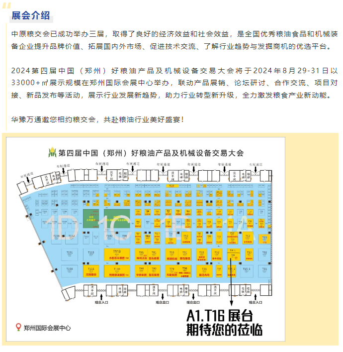 盛邀丨第四屆中國(鄭州)糧交會,華豫萬通A1·T16展臺等您蒞臨!