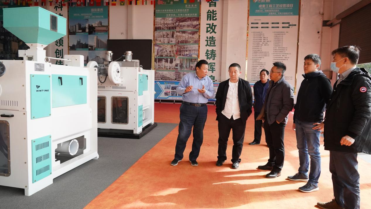 (沈總給客戶介紹雜糧脫皮核心設(shè)備)